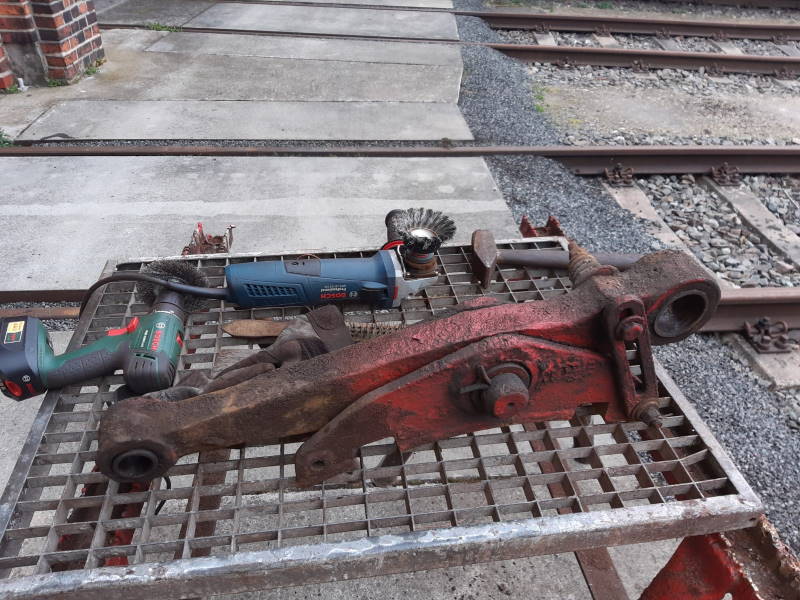 Die bereits demontierten Bremsteile wurden mit rotierenden Bürsten gereinigt und von Farbe befreit, um auch hier möglicherweise vorhandene Schäden erkennen zu können. Auch hier gab es keine wesentlichen Befunde.