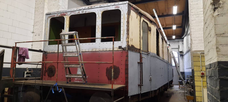 Erfreuliches gibt es sonst noch zu berichten. Wie Sie vielleicht verfolgt haben, ist der Verein seit ungefähr drei Jahren im Besitz des Beiwagen 190 851. Er ist ein alter Prignitzer, denn er wurde jahrzehntelang auf den Nebenbahnen rund um Perleberg und damit in unserer nächsten Nachbarschaft eingesetzt. Nach Stilllegung der Strecken wurde er nach Berlin umbeheimatet und diente als Dienstfahrzeug dem (Ost-)Berliner Bauamt bzw. der Deutschen Reichsbahn. Zuletzt wurde er in einem Lager des Berliner Museums für Verkehr und Technik aufbewahrt. Freundlicherweise hat uns dieses Museum das Fahrzeug überlassen. Wir erinnern uns, dass er Mitte Dezember 2019 mit verblichenem Lack, aber immerhin noch auf eigenen Rädern in Wittenberge ankam.