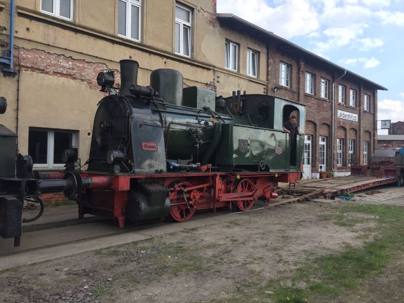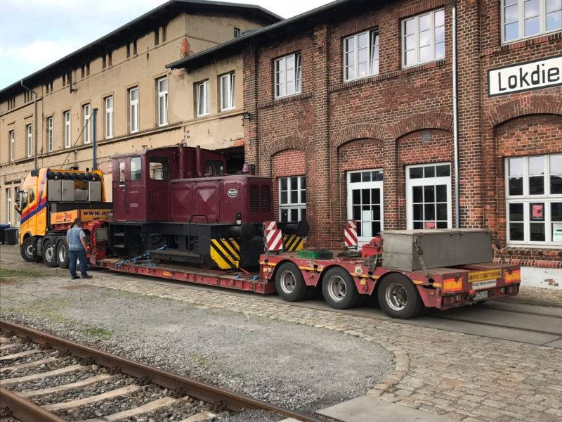 Von der Kur im östlichen Harzvorland kam unsere Dampflok Emma zurück. Sie wurde am 23.4. per Schwertransport in Wittenberge angeliefert.